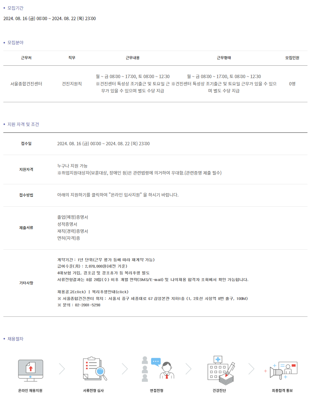 ¼¿ïÁ¾ÇÕ°ÇÁø¼¾ÅÍ ³»½Ã°æ½Ç ÀÌ¼Û»ç¿ø ¸ðÁý