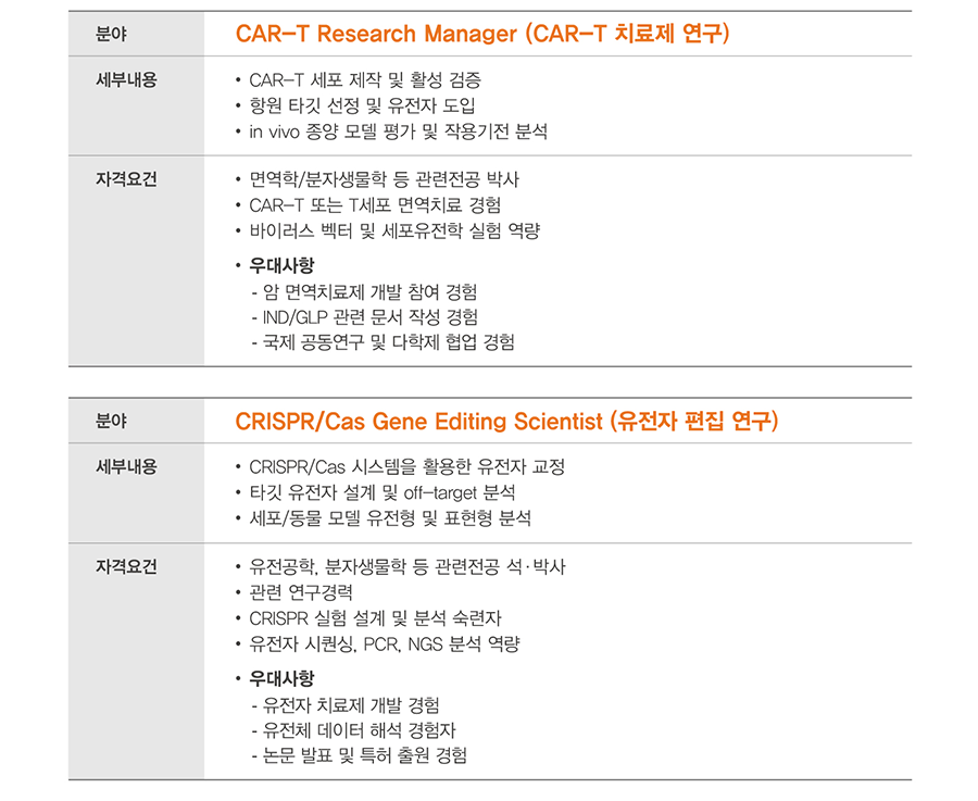 ºÐ¾ß CAR-T Research Manager (CAR-T Ä¡·áÁ¦ ¿¬±¸)