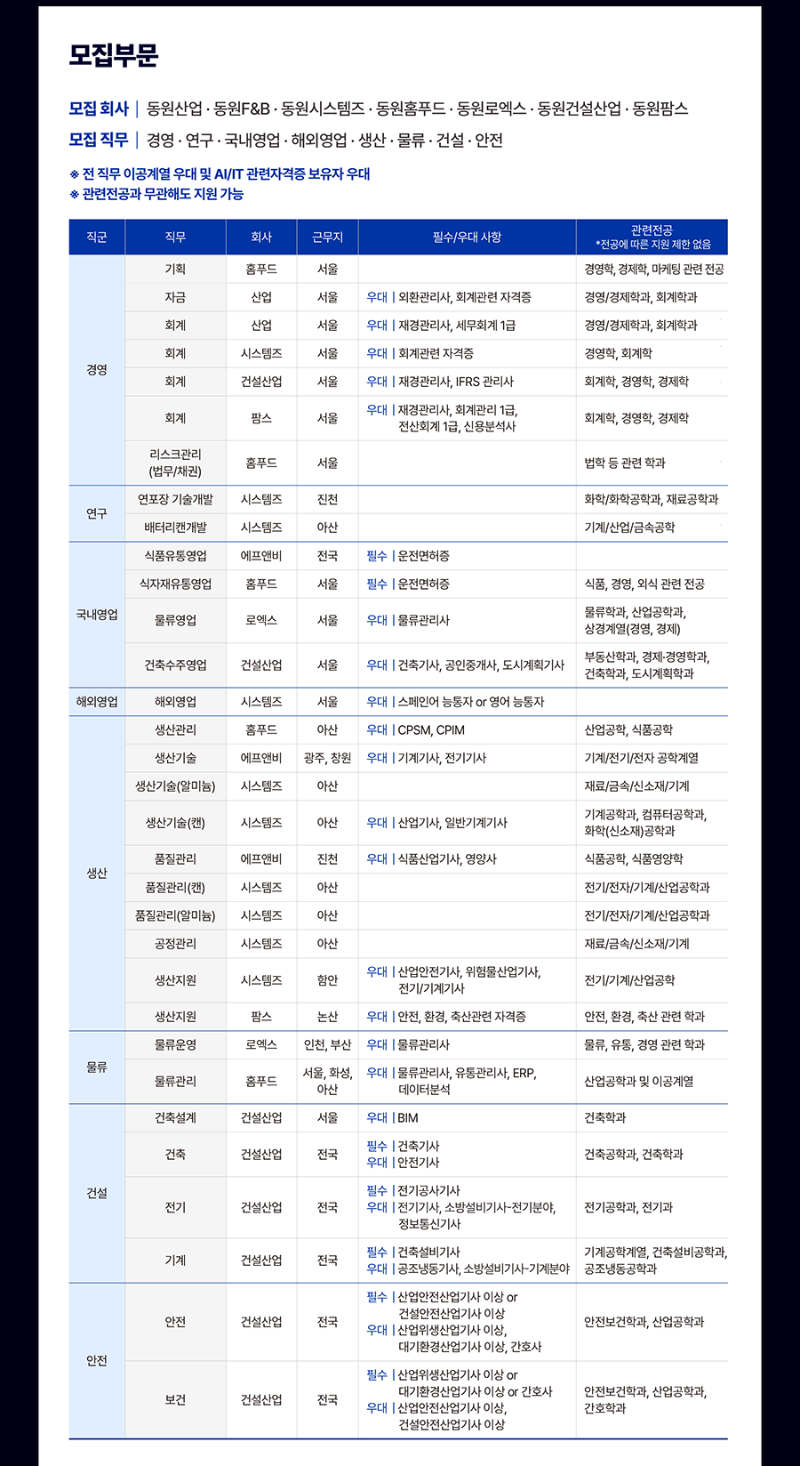 ¸ðÁý Á÷¹« °æ¿µ¡¤ ¿¬±¸¡¤ ±¹³»¿µ¾÷ ÇØ¿Ü¿µ¾÷ ¡¤ »ý»ê ¡¤ ¹°·ù °Ç¼³¡¤ ¾ÈÀü