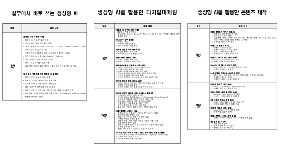 ±³À°³»¿ë: »ý¼ºÇü AI ÀÌÇØ ¹× ¸¶ÄÉÆÃ Àü·« ¼ö¸³, ½ÃÀå Á¶»ç¡¤ÄÜÅÙÃ÷ Á¦ÀÛ ½Ç½À
