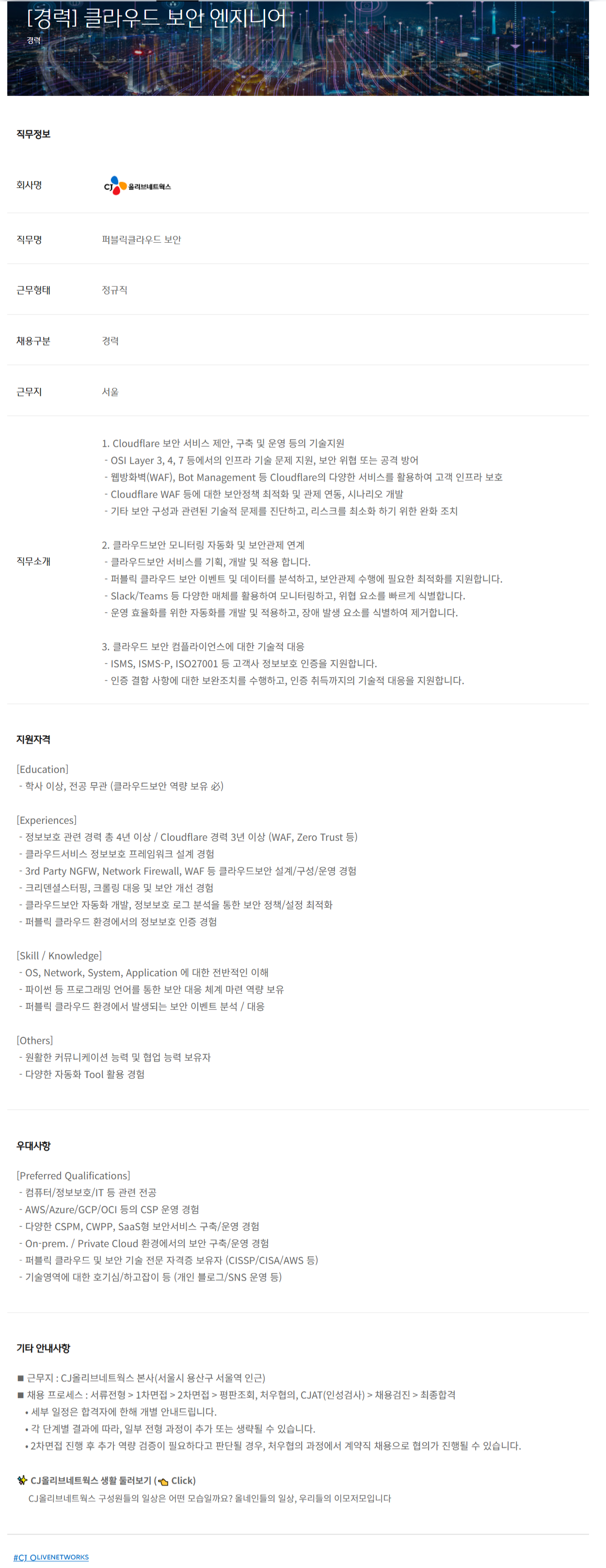 - Cloudflare WAF µî¿¡ ´ëÇÑ º¸¾ÈÁ¤Ã¥ ÃÖÀûÈ ¹× °üÁ¦ ¿¬µ¿, ½Ã³ª¸®¿À °³¹ß