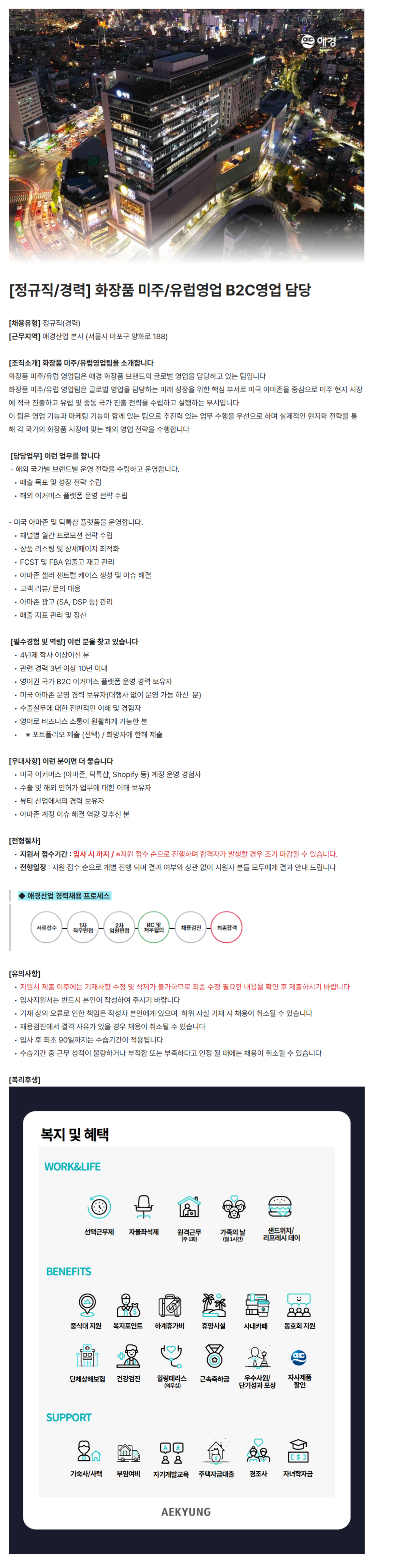 [Á¤±ÔÁ÷/°æ·Â] ÈÀåǰ ¹ÌÁÖ/À¯·´¿µ¾÷ B2C ¿µ¾÷ ´ã´ç ä¿ë