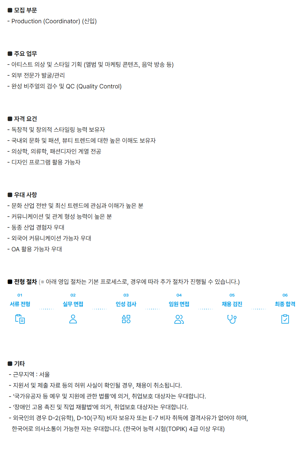 [JYP ENTERTAINMENT] Production (Coordinator) (½ÅÀÔ)