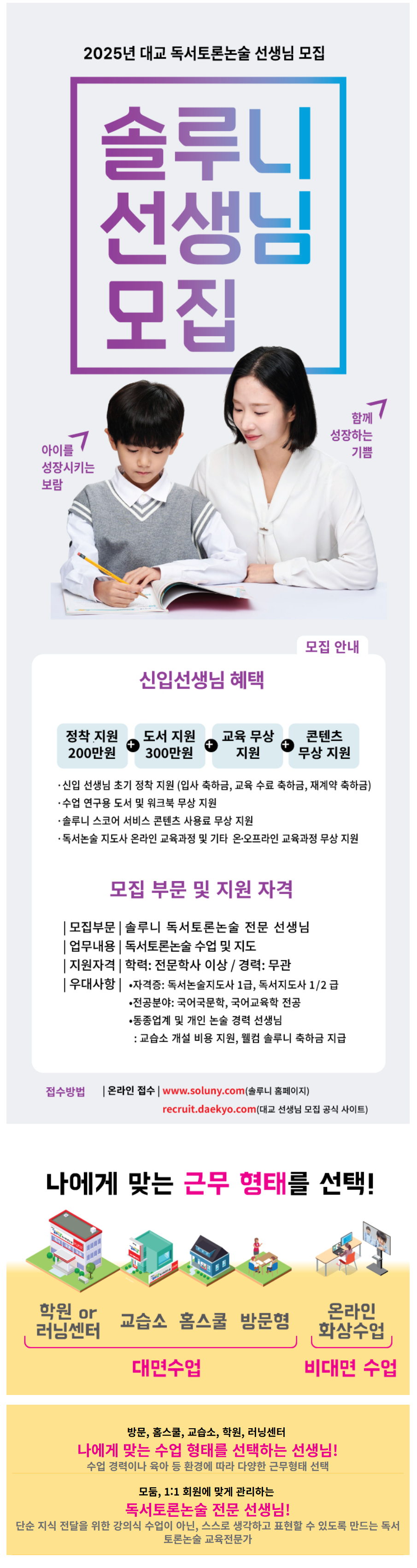 ¿¹ºñ ±³À° ¼ö·á ½Ã, ¼Ö·ç´Ï µ¶¼³í¼ú ÀÏ¹Ý ±³À°ÀÇ ÀÚ¿ø ÀÚ°ÝÀ» ºÎ¿©ÇØ ÁÖ´Â ¹«·á ±³À° °úÁ¤
