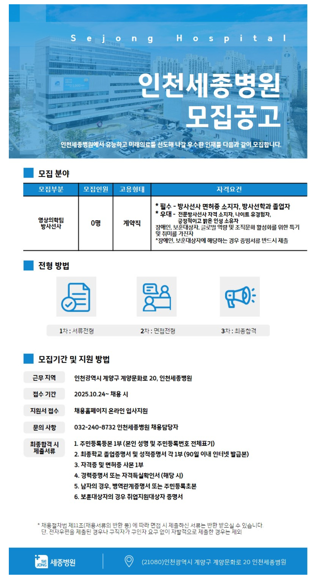 [ÀÎõ¼¼Á¾º´¿ø] ¿µ»óÀÇÇÐÆÀ ¹æ»ç¼±»ç ä¿ë(°è¾àÁ÷)
