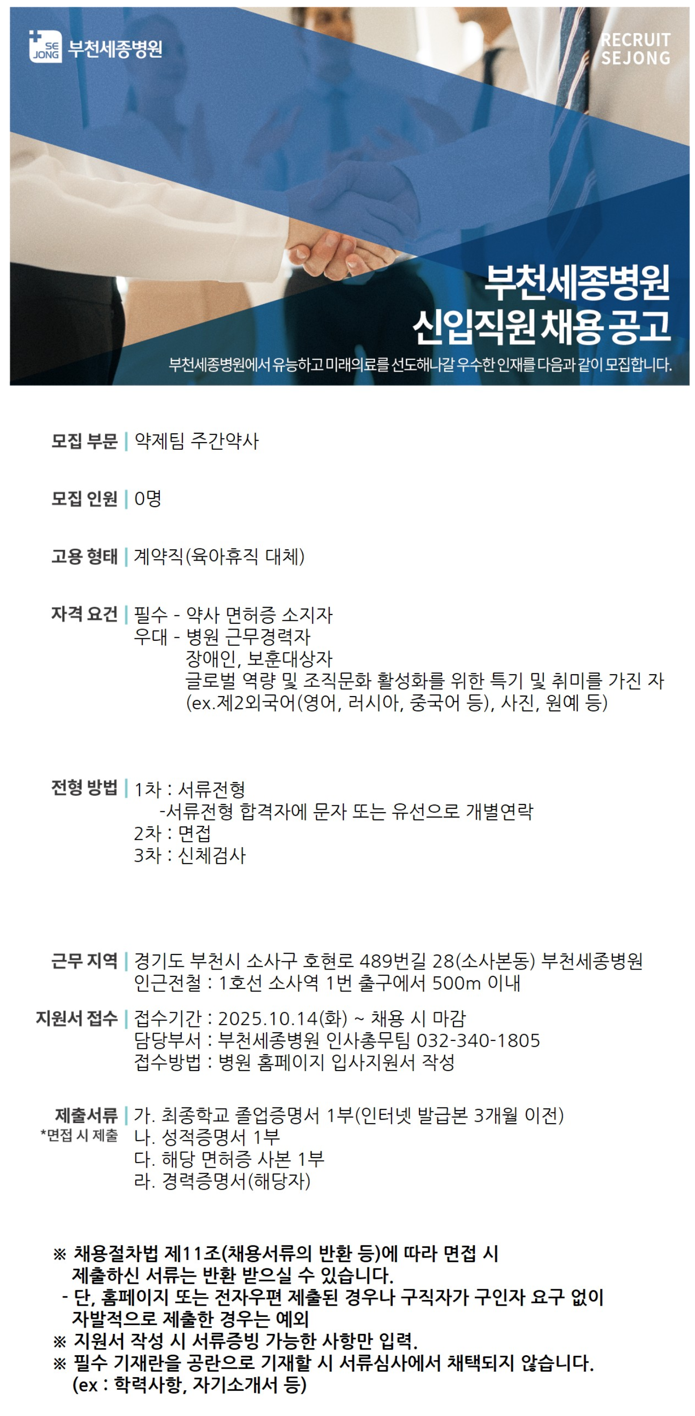 [ºÎõ¼¼Á¾º´¿ø] ¾àÁ¦ÆÀ ÁÖ°£¾à»ç ä¿ë°ø°í(°è¾àÁ÷)