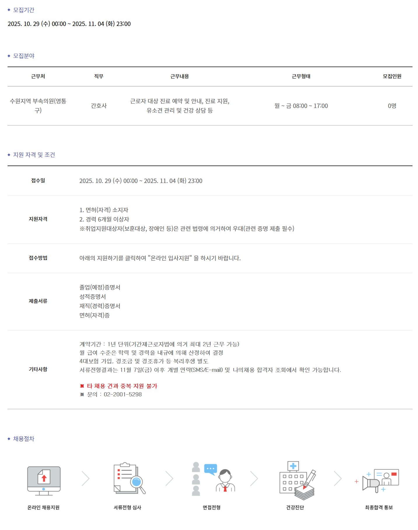 ±Ù¹«Ã³ Á÷¹« ±Ù¹«³»¿ë ±Ù¹«ÇüÅ ¸ðÁýÀοø ¼ö¿øÁö¿ª ºÎ¼ÓÀÇ¿ø(¿µÅ뱸) °£È£»ç ±Ù·ÎÀÚ ´ë»ó Áø·á ¿¹¾à ¹× ¾È³», Áø·á Áö¿ø, À¯¼Ò°ß °ü¸® ¹× °Ç° »ó´ã µî ¿ù ~ ±Ý 08:00 ~ 17:00 0¸í