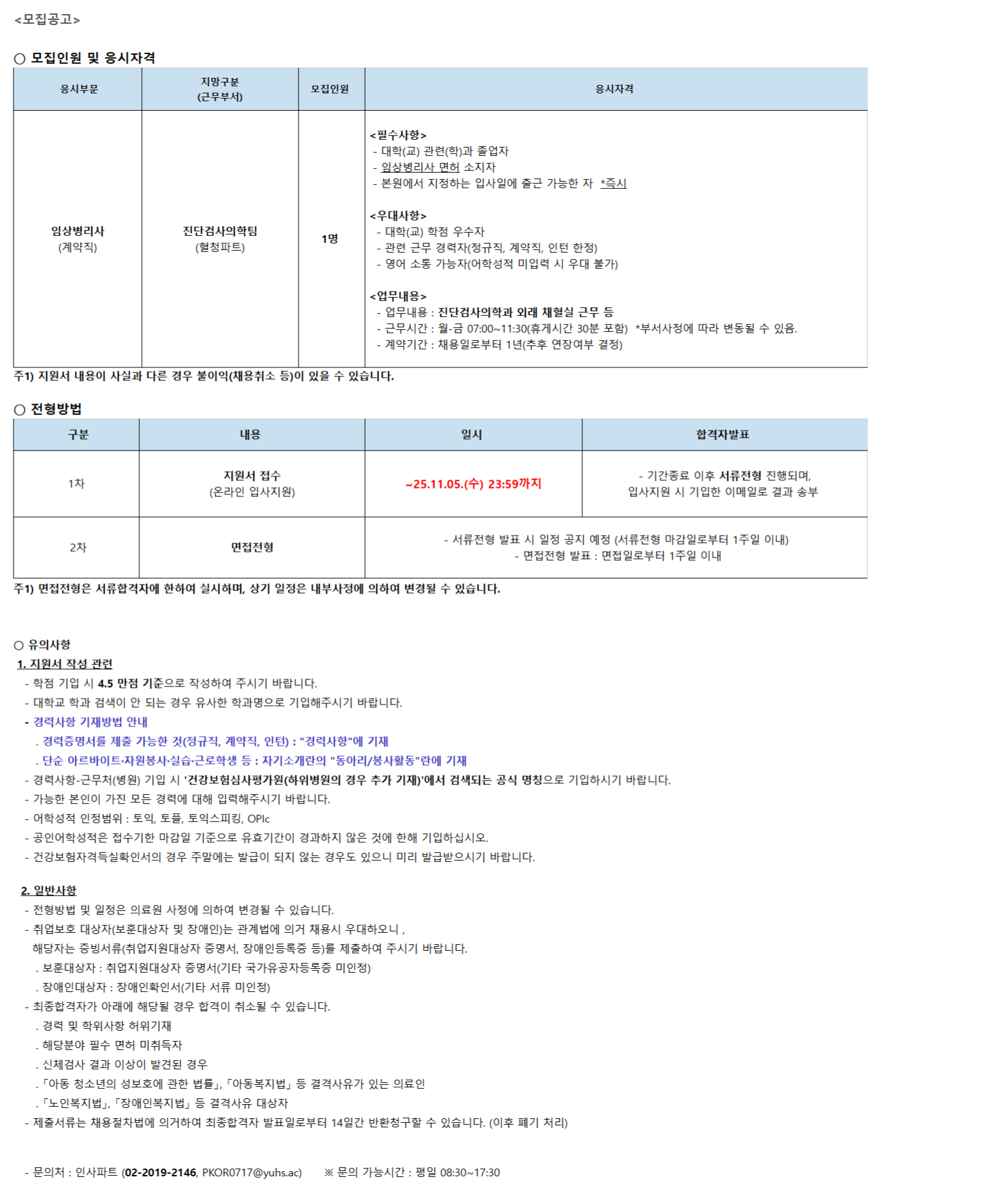 [ÀϹÝ-°³²] ÀÓ»óº´¸®»ç(°è¾àÁ÷;´Ü½Ã°£) Áø´Ü°Ë»çÀÇÇÐÆÀ 25.11 ¸ðÁý