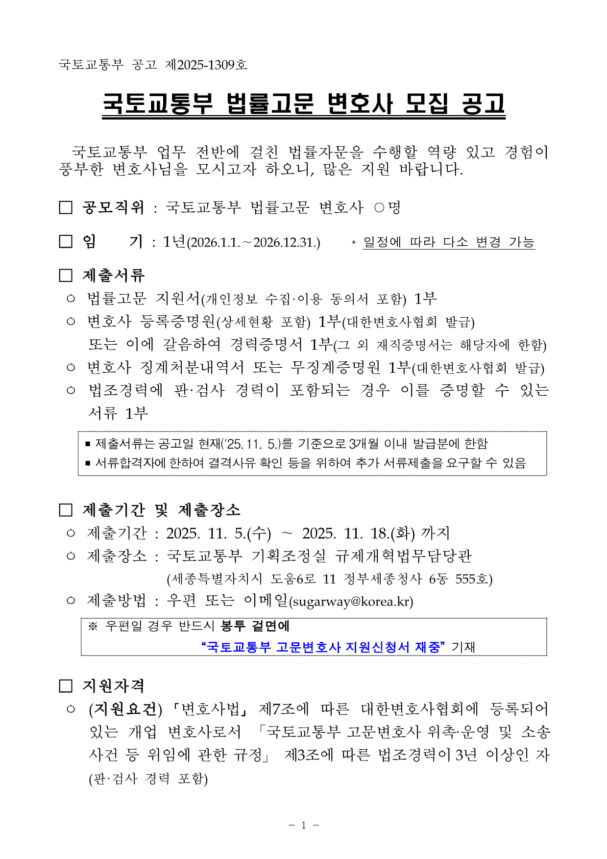 ¡à °ø¸ðÁ÷À§ : ±¹Åä±³ÅëºÎ ¹ý·ü°í¹® º¯È£»ç ¡Û¸í