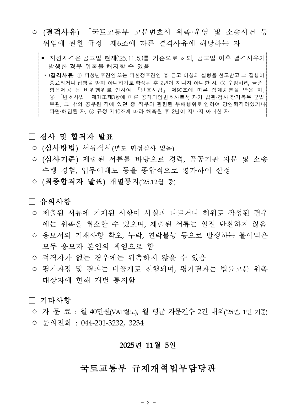 ¤· (Áö¿ø¿ä°Ç) 「º¯È£»ç¹ý」 Á¦7Á¶¿¡ µû¸¥ ´ëÇѺ¯È£»çÇùȸ¿¡ µî·ÏµÇ¾îÀÖ´Â °³¾÷ º¯È£»ç·Î¼ ¡¸±¹Åä±³ÅëºÎ °í¹®º¯È£»ç À§ÃË¡¤¿î¿µ ¹×¼Ò¼Û»ç°Ç µî À§ÀÓ¿¡ °üÇÑ ±ÔÁ¤¡¹ Á¦3Á¶¿¡ µû¸¥ ¹ýÁ¶°æ·ÂÀÌ 3³â ÀÌ»óÀÎÀÚ(ÆÇ¡¤°Ë»ç °æ·Â Æ÷ÇÔ)