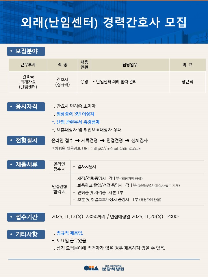 [ºÐ´çÂ÷º´¿ø] ¿Ü·¡(³ÀÓ¼¾ÅÍ) °æ·Â°£È£»ç ¸ðÁý