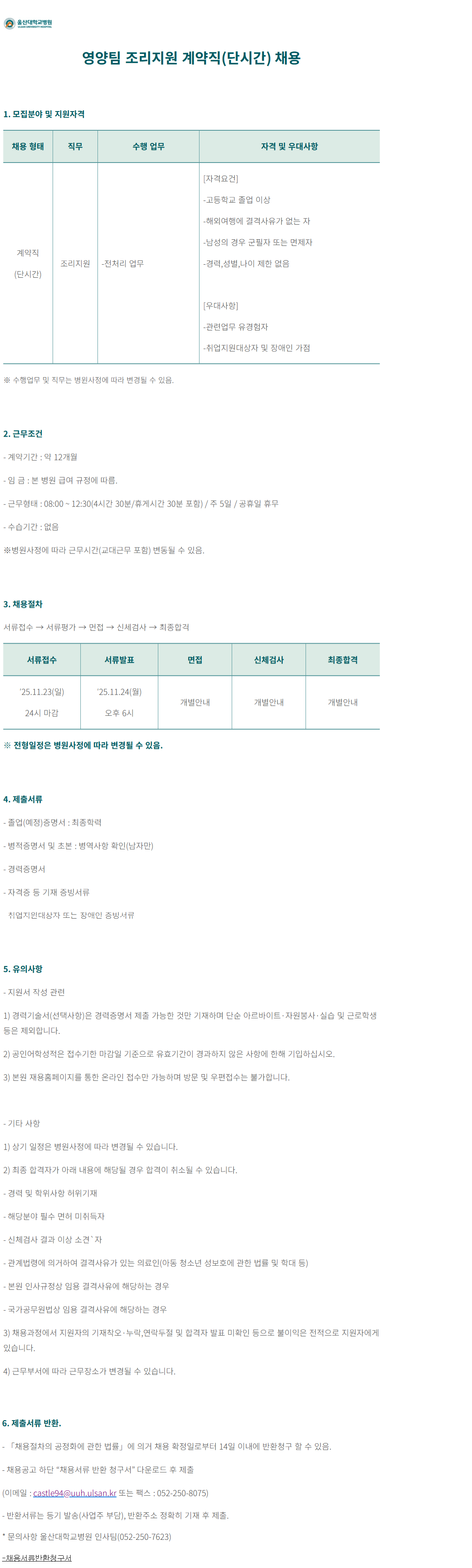 ¿µ¾çÆÀ Á¶¸®Áö¿ø °è¾àÁ÷(´Ü½Ã°£) ä¿ë