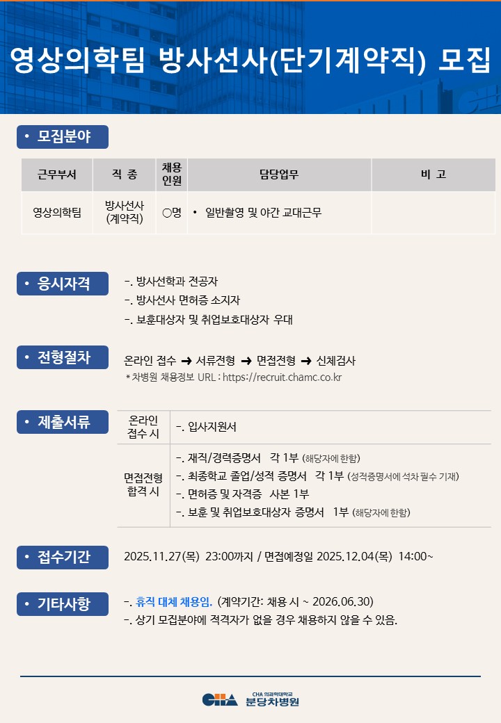 [ºÐ´çÂ÷º´¿ø] ¿µ»óÀÇÇÐÆÀ ¹æ»ç¼±»ç(´Ü±â°è¾àÁ÷) ¸ðÁý