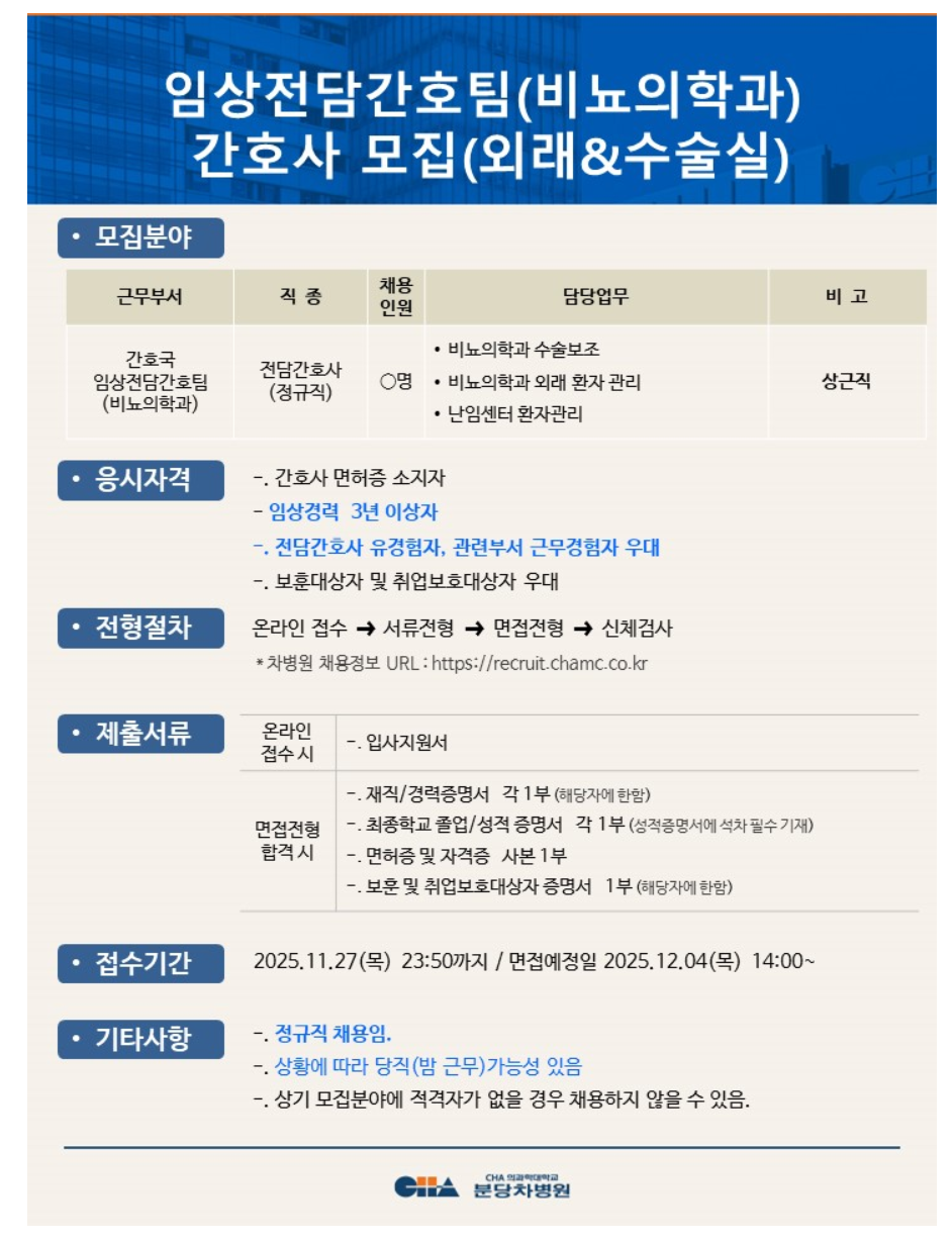 [ºÐ´çÂ÷º´¿ø] ÀÓ»óÀü´ã°£È£ÆÀ(ºñ´¢ÀÇÇаú) °£È£»ç ¸ðÁý(¿Ü·¡&¼ö¼ú½Ç)