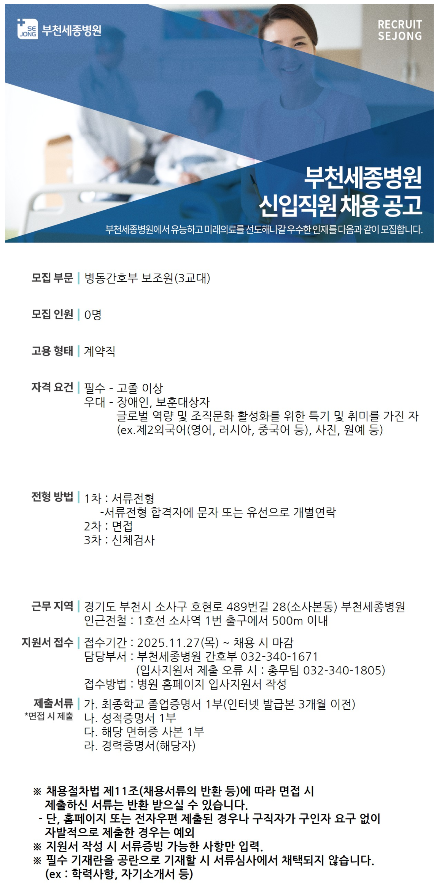[ºÎõ¼¼Á¾º´¿ø] º´µ¿°£È£ºÎ º¸Á¶¿ø(3±³´ë)ä¿ë°ø°í(°è¾àÁ÷)