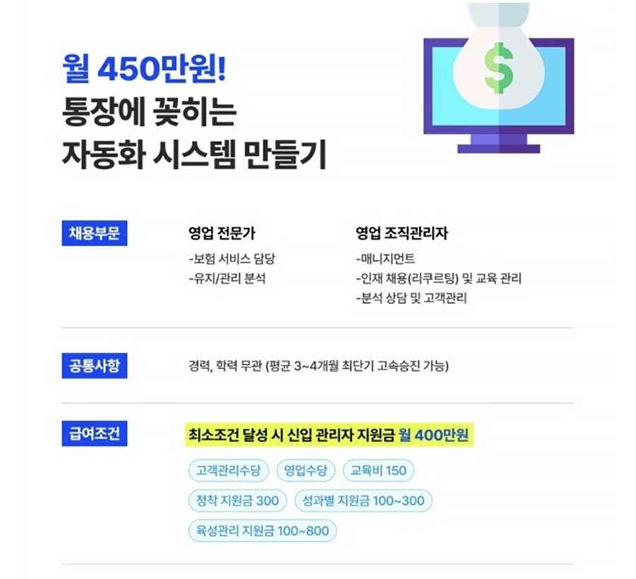 ±Þ¿©Á¶°Ç ÃÖ¼ÒÁ¶°Ç ´Þ¼º ½Ã ½ÅÀÔ °ü¸®ÀÚ Áö¿ø±Ý ¿ù 400¸¸¿ø