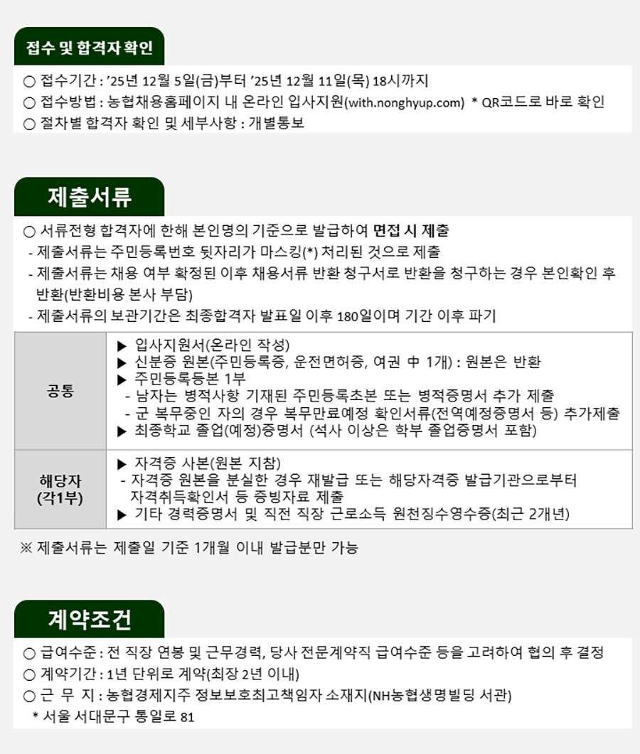 ¡Û Á¢¼ö¹æ¹ý : ³óÇùä¿ëȨÆäÀÌÁö ³» ¿Â¶óÀÎ ÀÔ»çÁö ¿ø(with.nonghyup.com) * QRÄÚµå·Î ¹Ù·Î È®ÀÎ