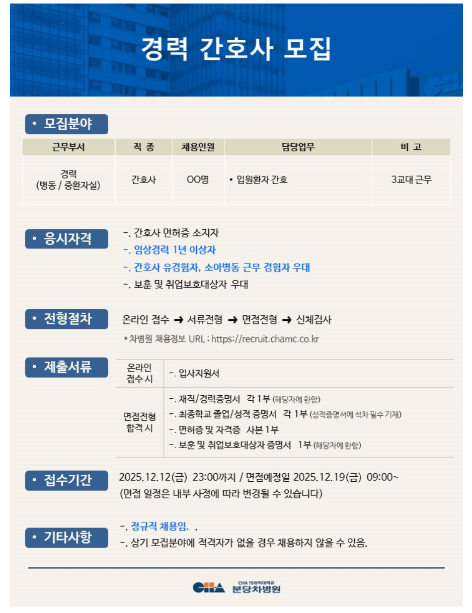 [ºÐ´çÂ÷º´¿ø] °æ·Â °£È£»ç ¸ðÁý