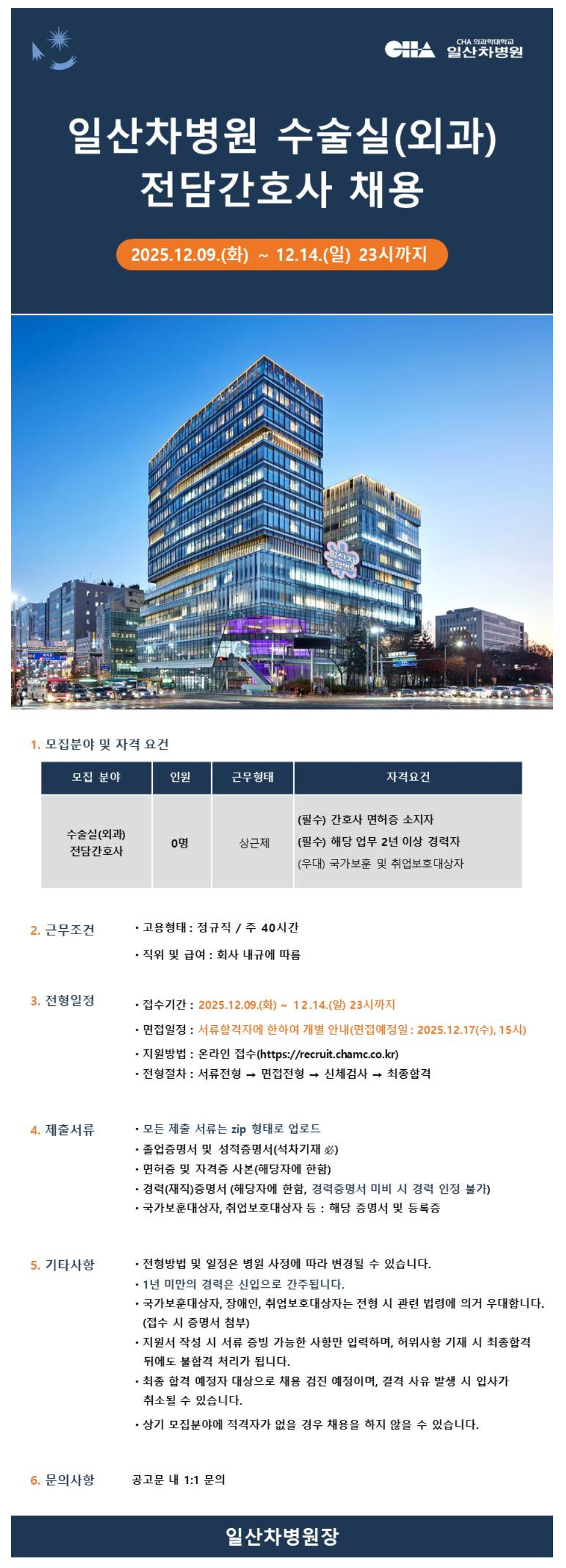 [ÀÏ»êÂ÷º´¿ø] ÀÏ»êÂ÷º´¿ø ¼ö¼ú½Ç(¿Ü°ú) Àü´ã°£È£»ç ä¿ë