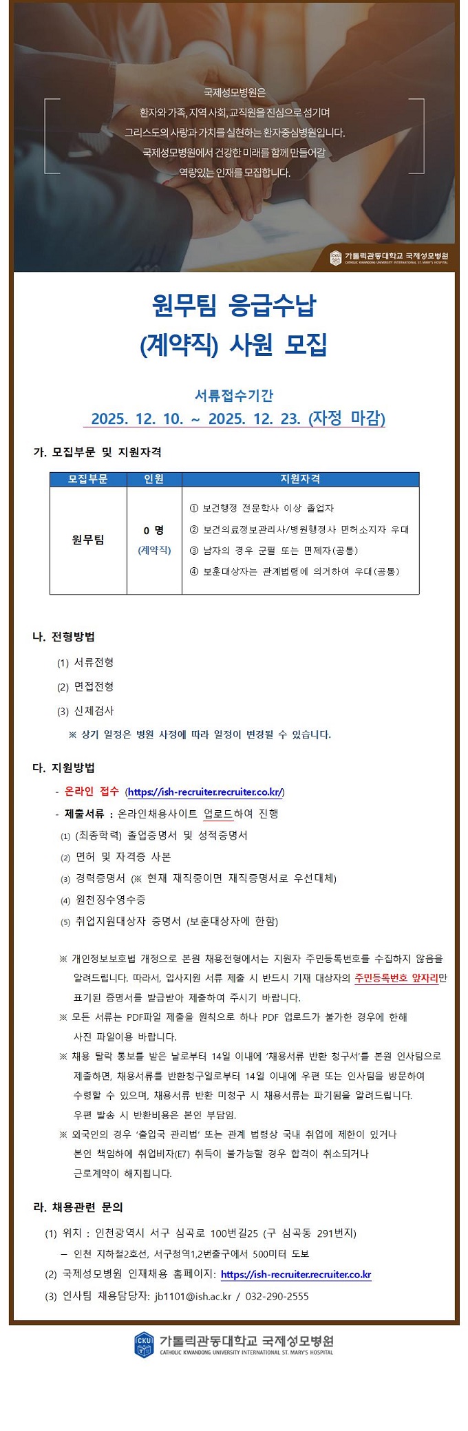 ¿ø¹«ÆÀ (°è¾àÁ÷) ÀÀ±Þ¿ø¹« »ç¿ø ¸ðÁý