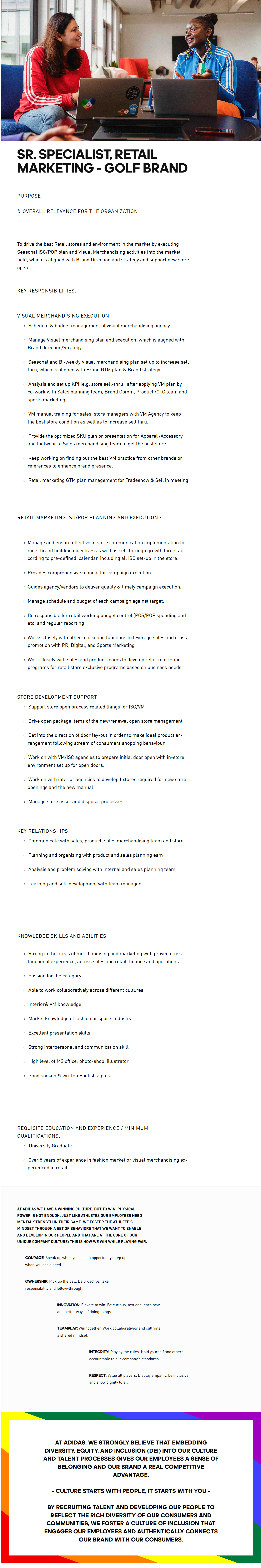 At adidas, we strongly believe that embedding diversity, equity, and inclusion (DEI) into our culture and talent processes gives our employees a sense of belonging and our brand a real competitive advantage.