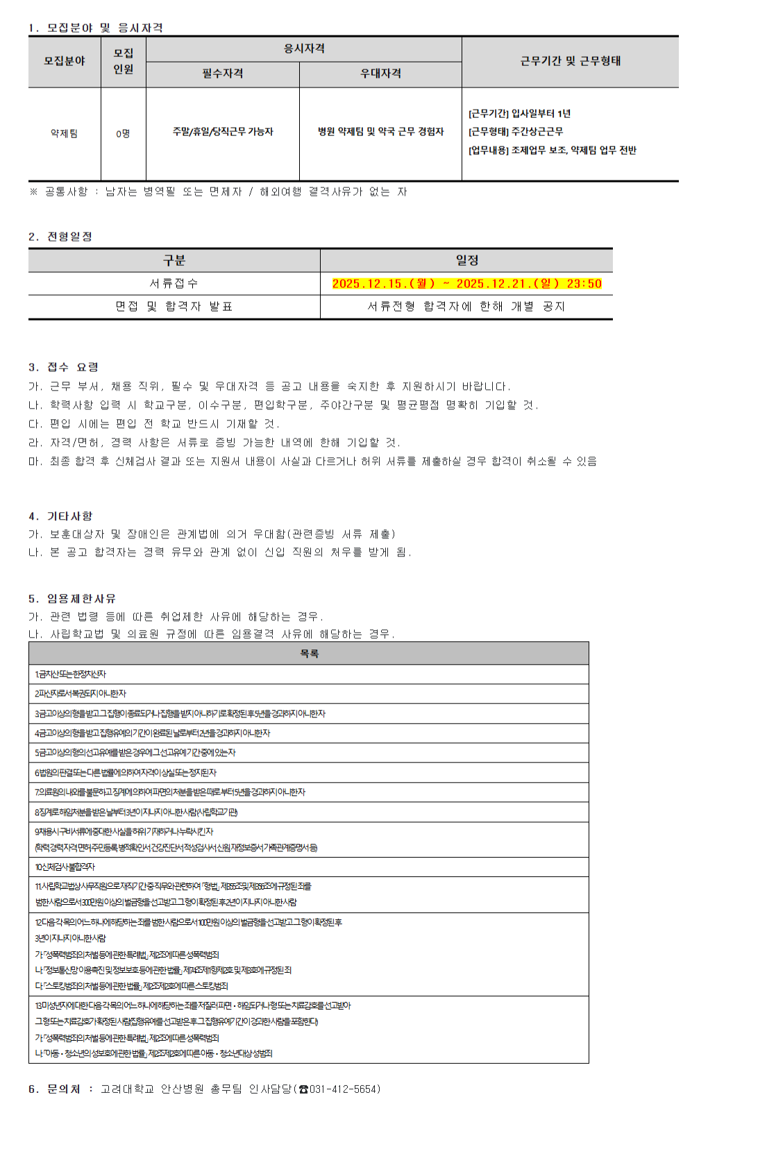 [¾È»êº´¿ø25-192] ¾àÁ¦ÆÀ °è¾àÁ÷ÀϹݾ÷¹«¿ø ¸ðÁý