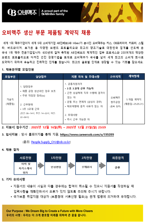 ûÁÖ°øÀå Á¦Ç°ÆÀ »ý»êºÎ¹® ä¿ë(°è¾àÁ÷)
