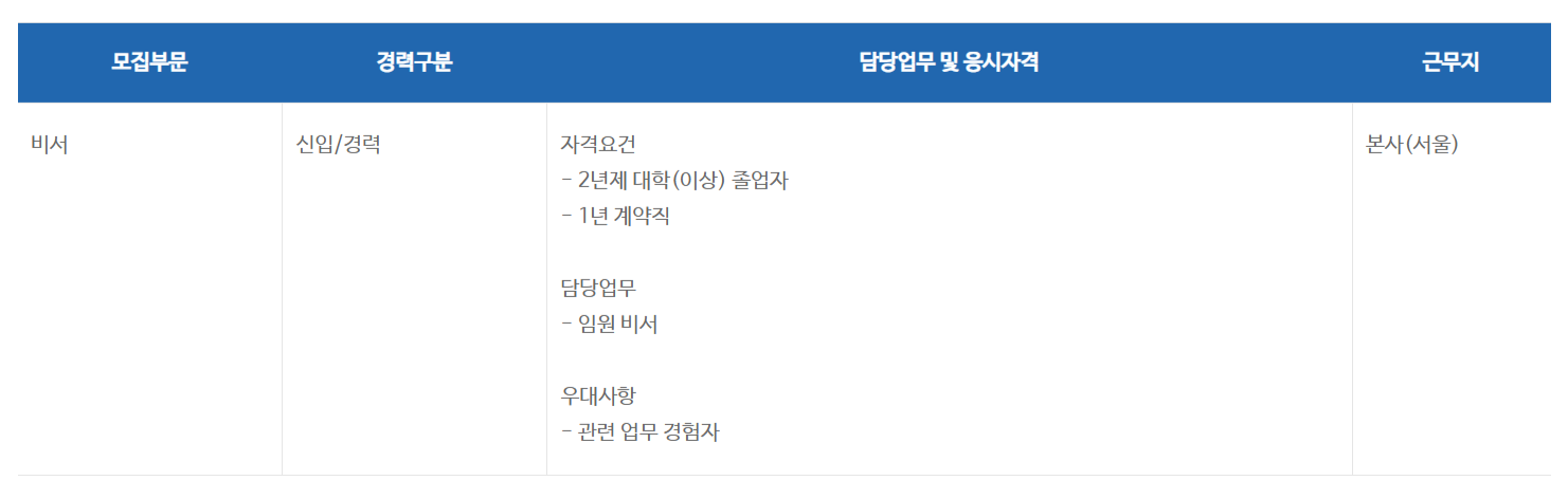 ¸ðÁýºÎ¹® °æ·Â±¸ºÐ ´ã´ç¾÷¹« ¹× ÀÀ½ÃÀÚ°Ý ±Ù¹«Áö ºñ¼ ½ÅÀÔ/°æ·Â ÀÚ°Ý¿ä°Ç - 2³âÁ¦ ´ëÇÐ(ÀÌ»ó) Á¹¾÷ÀÚ - 1³â °è¾àÁ÷ ´ã´ç¾÷¹« - ÀÓ¿ø ºñ¼ ¿ì´ë»çÇ× - °ü·Ã ¾÷¹« °æÇèÀÚ º»»ç(¼¿ï)