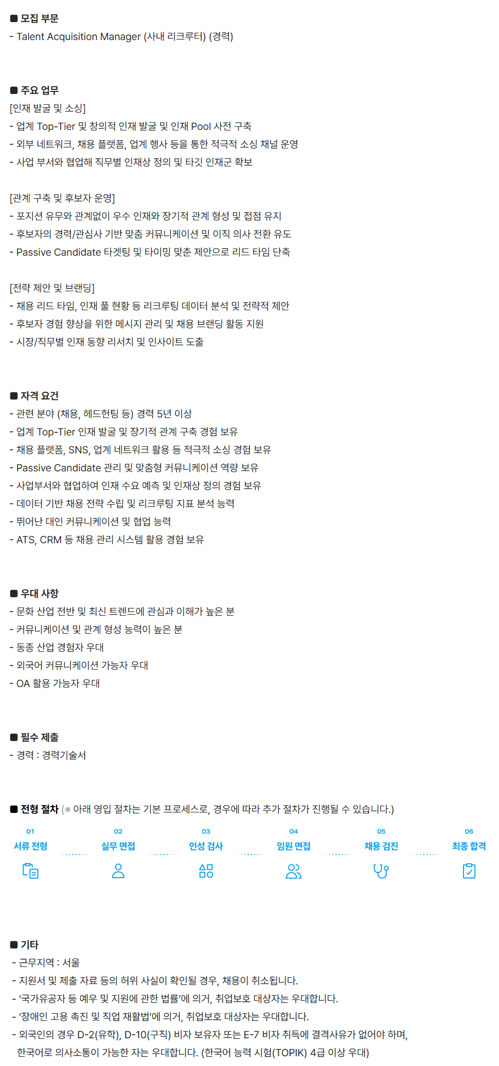 - Talent Acquisition Manager (»ç³» ¸®Å©·çÅÍ) (°æ·Â)