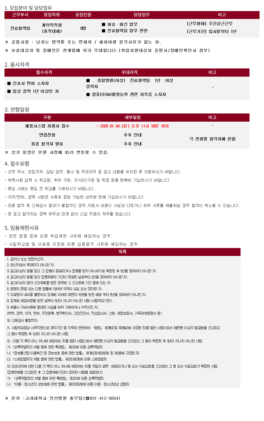 [¾È»êº´¿ø25-207] Áø·áÇù·ÂÆÀ °è¾àÁ÷Á÷¿ø(ÈÞÁ÷´ëü)
