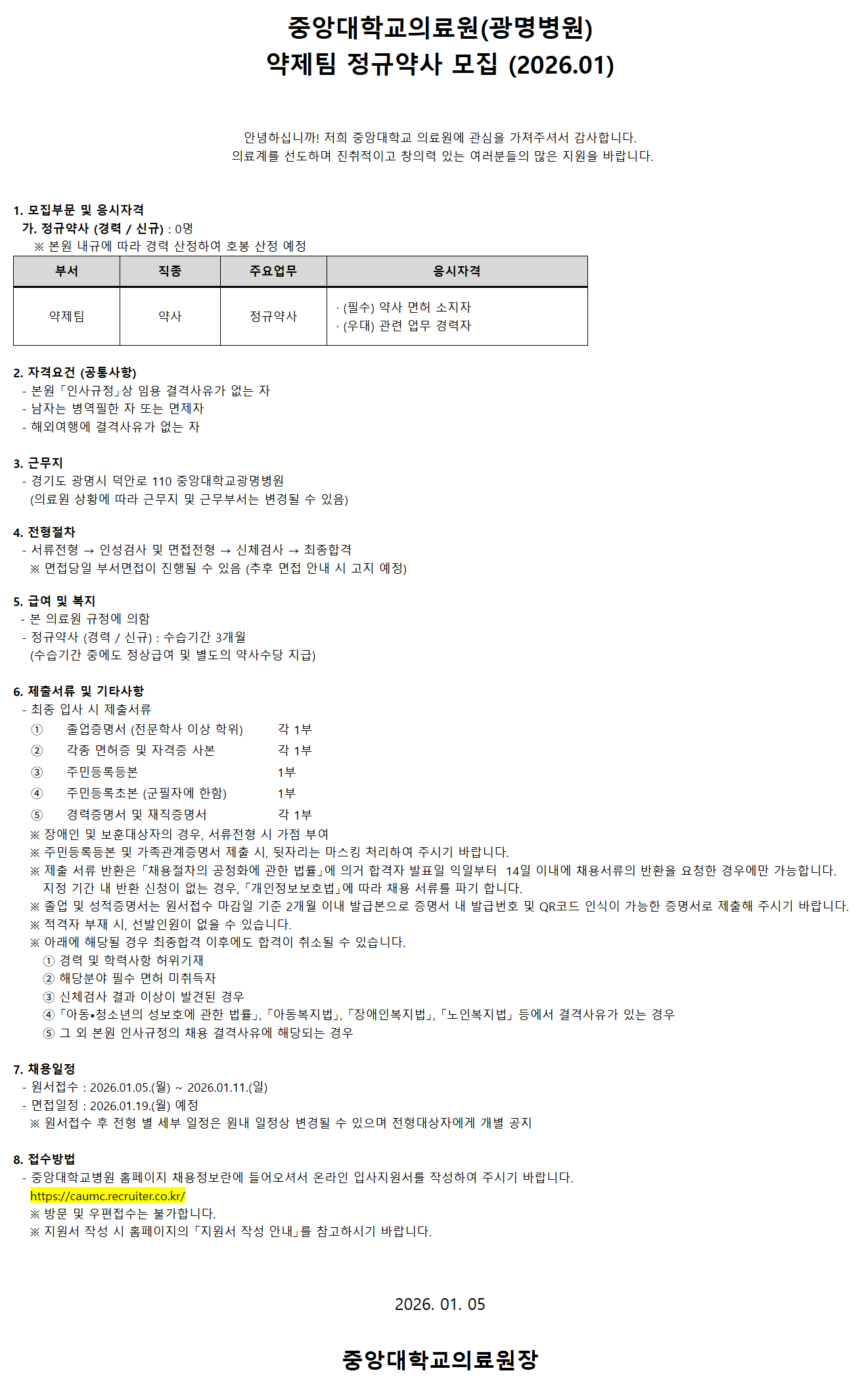 ¾àÁ¦ÆÀ Á¤±Ô¾à»ç ¸ðÁý (2026.01)