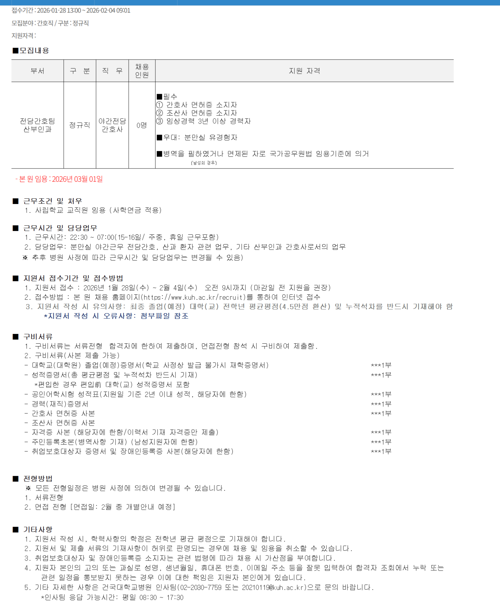 [Á¤±ÔÁ÷] 2026³âµµ Á¶»ê»ç º¸À¯ ¾ß°£Àü´ã °£È£»ç ä¿ë