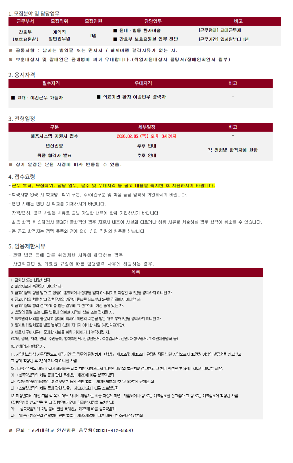 ±Ù¹«ºÎ¼­ ¸ðÁýÁ÷À§ ¸ðÁýÀοø ´ã´ç¾÷¹« ºñ°í °£È£ºÎ (º¸È£¿ä¿ø½Ç) °è¾àÁ÷ ÀϹݾ÷¹«¿ø 0¸í ¡á ¿ø³»¡¤º´µ¿ ȯÀÚÀÌ¼Û ¡á °£È£ºÎ º¸È£¿ä¿ø½Ç ¾÷¹« Àü¹Ý [±Ù¹«ÇüÅÂ] ±³´ë±Ù¹«Á¦ [±Ù¹«±â°£] ÀÔ»çÀϺÎÅÍ 1³â ¡Ø °øÅë»çÇ× : ³²ÀÚ´Â º´¿ªÇÊ ¶Ç´Â ¸éÁ¦ÀÚ / ÇØ¿Ü¿©Çà °á°Ý»çÀ¯°¡ ¾ø´Â ÀÚ. ¡Ø º¸ÈÆ´ë»óÀÚ ¹× Àå¾ÖÀÎÀº °ü°è¹ý¿¡ ÀǰŠ¿ì´ëÇÕ´Ï´Ù.(Ãë¾÷Áö¿ø´ë»óÀÚ Áõ¸í¼­/Àå¾ÖÀÎÈ®Àμ­ ÷ºÎ)