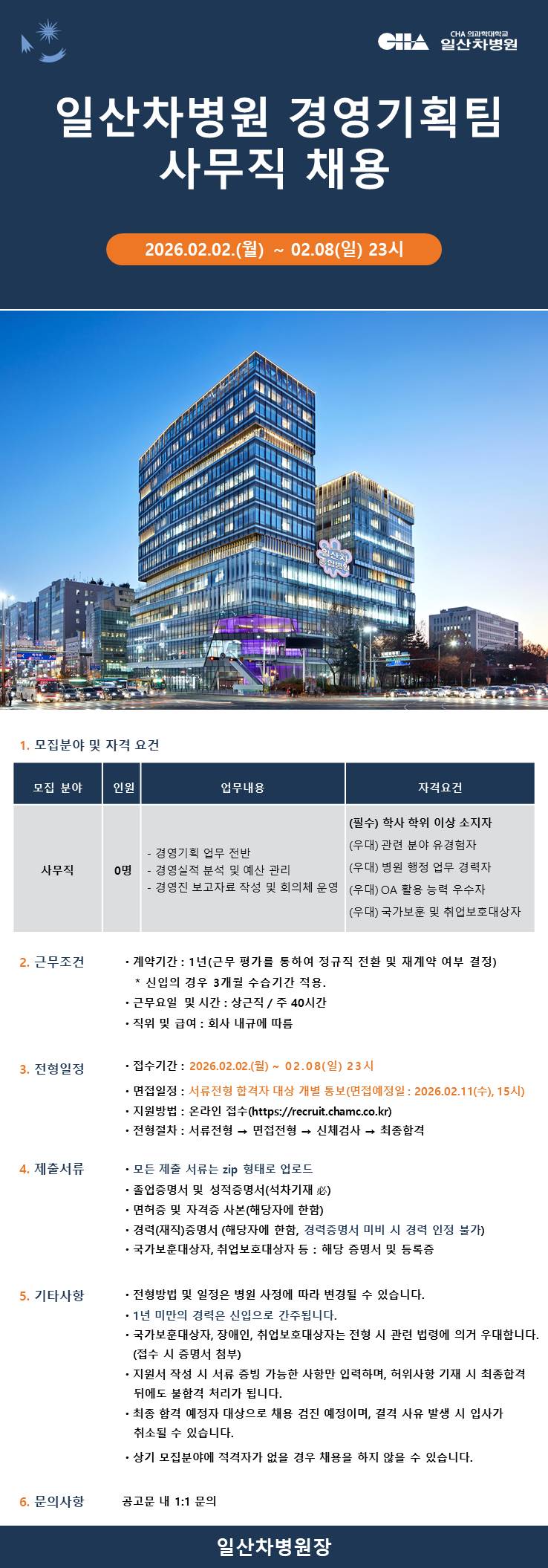 [ÀÏ»êÂ÷º´¿ø] ÀÏ»êÂ÷º´¿ø °æ¿µ±âȹÆÀ »ç¹«Á÷ ä¿ë