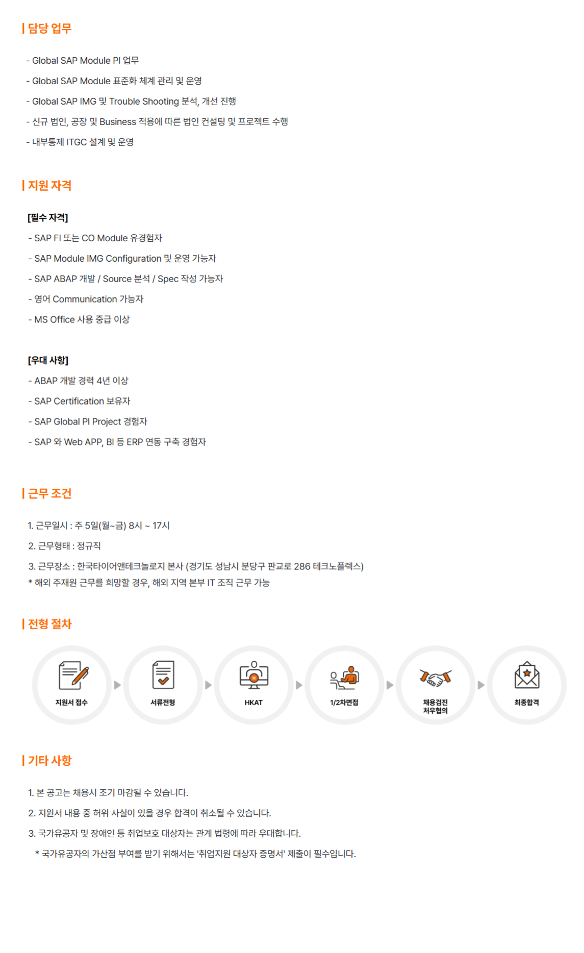 | ´ã´ç ¾÷¹« - Global SAP Module PI ¾÷¹« - Global SAP Module Ç¥ÁØÈ­ ü°è °ü¸® ¹× ¿î¿µ - Global SAP IMG ¹× Trouble Shooting ºÐ¼®, °³¼± ÁøÇà - ½Å±Ô ¹ýÀÎ, °øÀå ¹× Business Àû¿ë¿¡ µû¸¥ ¹ýÀÎ ÄÁ¼³ÆÃ ¹× ÇÁ·ÎÁ§Æ® ¼öÇà - ³»ºÎÅëÁ¦ ITGC ¼³°è ¹× ¿î¿µ | Áö¿ø ÀÚ°Ý [Çʼö ÀÚ°Ý] - SAP FI ¶Ç´Â CO Module À¯°æÇèÀÚ - SAP Module IMG Configuration ¹× ¿î¿µ °¡´ÉÀÚ - SAP ABAP °³¹ß / Source ºÐ¼® / Spec ÀÛ¼º °¡´ÉÀÚ - ¿µ¾î Communication °¡´ÉÀÚ - MS Office »ç¿ë Áß±Þ ÀÌ»ó