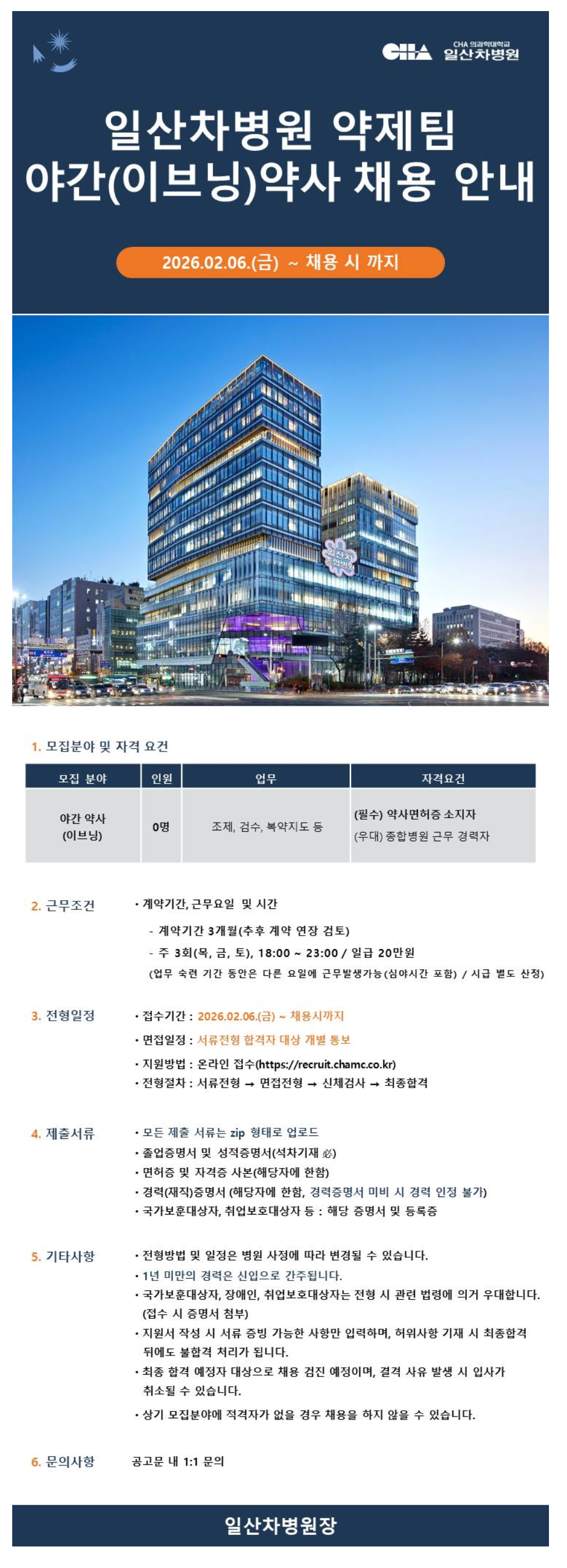 [ÀÏ»êÂ÷º´¿ø] ÀÏ»êÂ÷º´¿ø ¾àÁ¦ÆÀ ¾ß°£(À̺ê´×)¾à»ç ä¿ë