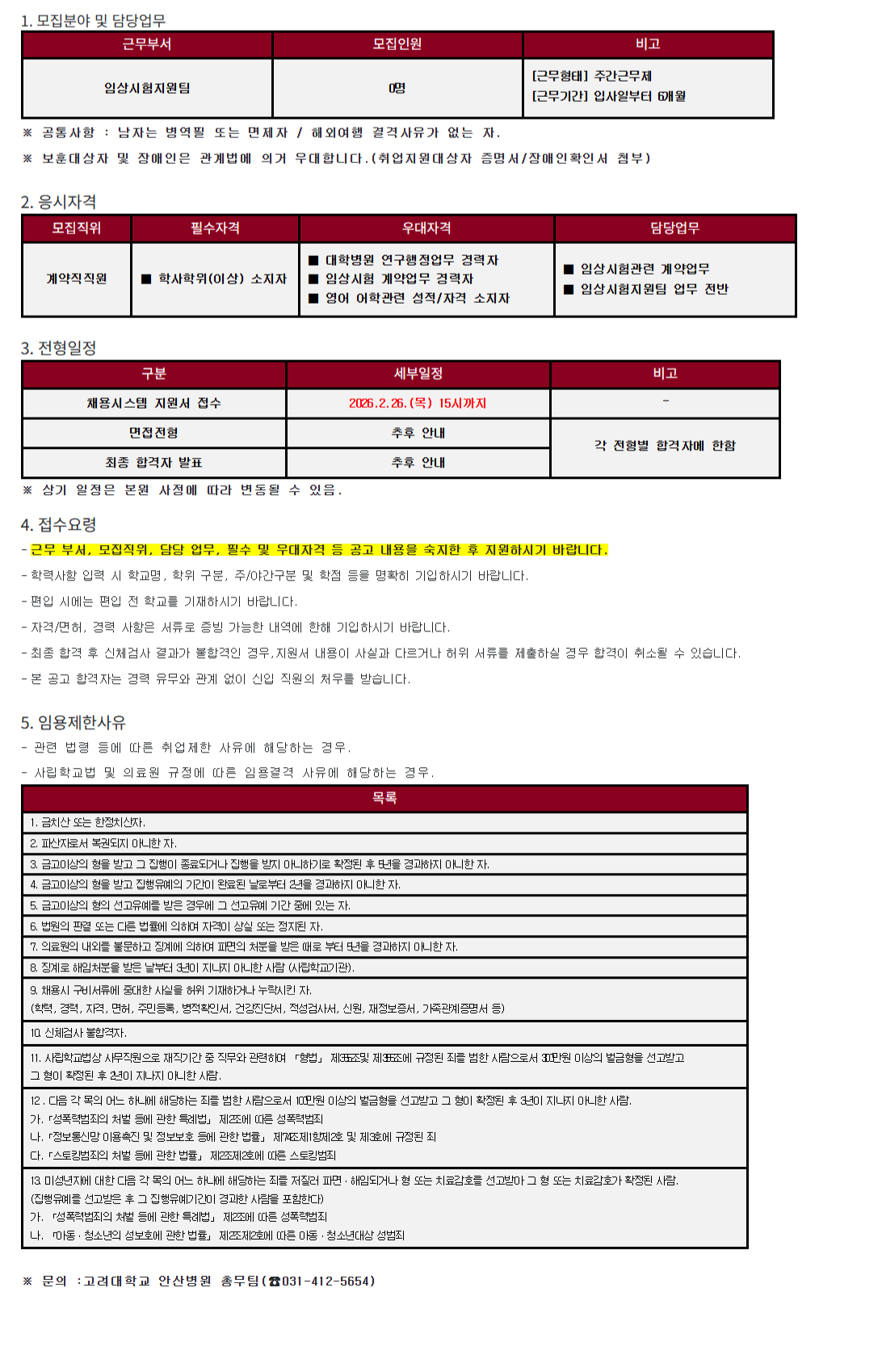[¾È»êº´¿ø25-254] ÀÓ»ó½ÃÇèÁö¿øÆÀ °è¾àÁ÷Á÷¿ø ¸ðÁý