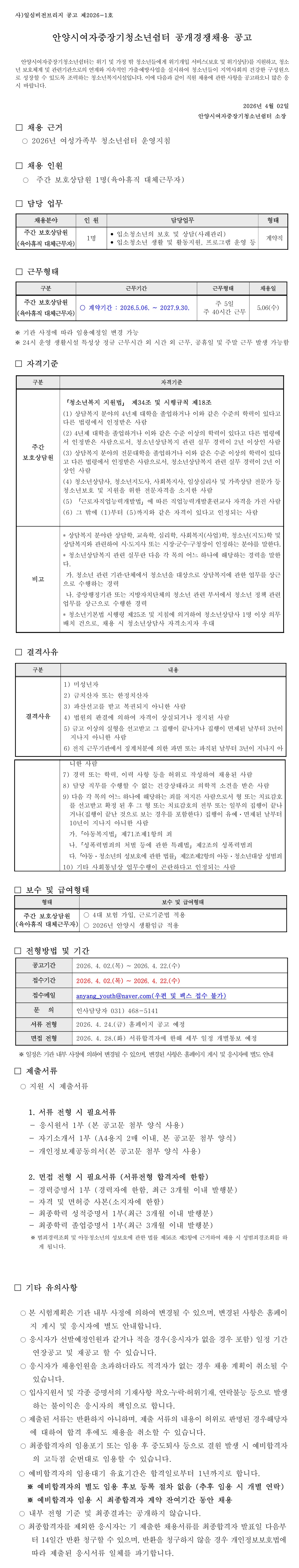 ÇÕ°Ý ÈÄ Ã¤¿ë½Ã, '¾È¾ç½Ã¿©ÀÚÁßÀå±âû¼Ò³â½°ÅÍ' ¼Ò¼ÓÀ¸·Î ±Ù¹«ÇÏ°Ô µË´Ï´Ù.