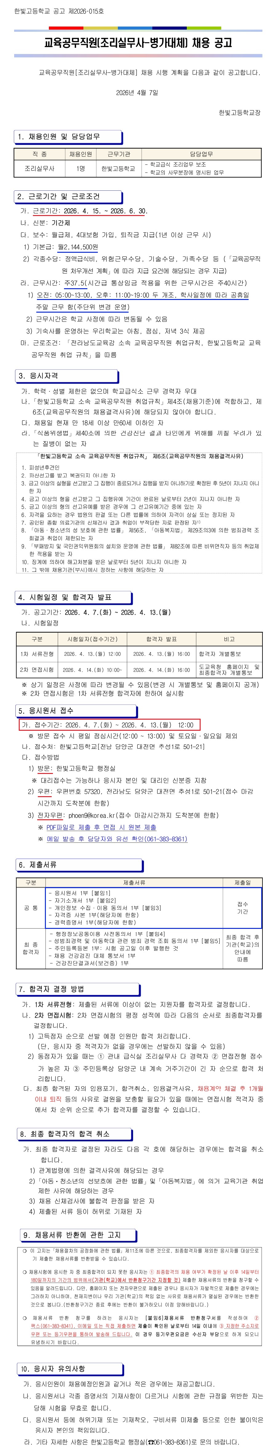 Á¶¸®½Ç¹«»ç ä¿ë°ø°í(º´°¡´ëü, 3°³¿ù)